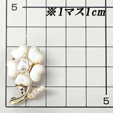 ミキモト アコヤ真珠 ブローチ ダイヤモンド シェル K18イエローゴールド MIKIMOTO ペンダントトップ 2way 花 フラワー 植物 ボタニカル ハート【中古】【901577】