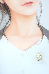 コメント ミキモトの、シェルの瑞々しい輝きが明るく、清楚な雰囲気のブローチです。ハート型の花びらで形作られたフラワーモチーフが可愛らしく、ダイヤモンドの繊細な煌めきがフェミニンな印象を高めてくれます。