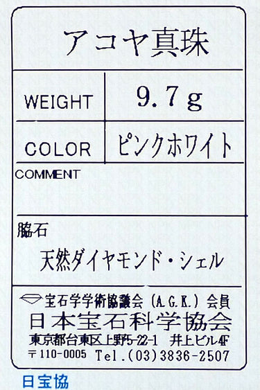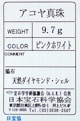 アコヤ真珠 色:ピンクを帯びたクリームホワイトの色合い