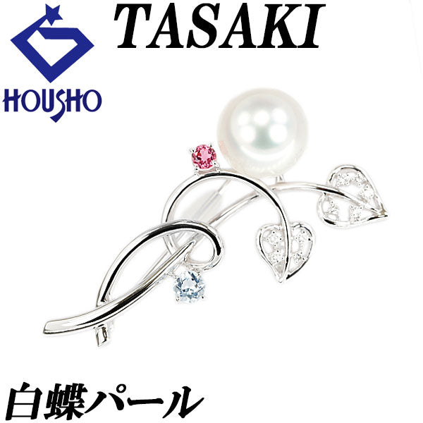 商品名 タサキ 田崎真珠 白蝶真珠(南洋真珠) ブローチ ダイヤモンド ピンクトルマリン アクアマリン K18ホワイトゴールド TASAKI 葉 リーフ 植物 ボタニカル 透かし