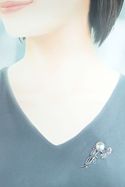 コメント タサキの、艶やかな輝きを湛える白蝶パールがあしらわれた、優美な雰囲気のブローチです。細めのしなやかなラインで模られたボタニカルモチーフに、ピンクトルマリンとアクアマリンが可憐な印象を引き立てます。