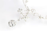 お花のようにセットされたダイヤモンドの下には瑞々しく輝くペアシェイプカットのダイヤモンドがピュアな印象を引き出します