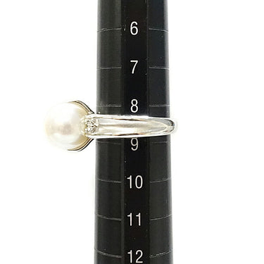 銀座ミワ アコヤパール リング 9.3mm ダイヤモンド Pt900 梨地 マット ツヤ消し ブランド MIWA | あこや真珠 白真珠 和珠 ダイアモンド 上品 エレガント かわいい おしゃれ【中古】【SH119441】
