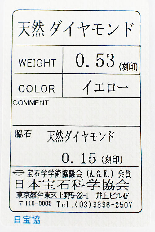 イエローダイヤモンド 色:ややオレンジを帯びたイエローの色合い