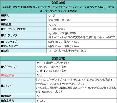 商品名:タサキ 田崎真珠 ダイヤモンド ガーデンオブキュリオシティ ソーンズ リング 0.10ct K18YG オープンリング ブランド TASAKI
