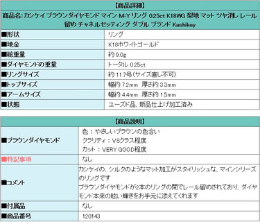 商品名:カシケイ ブラウンダイヤモンド マイン M=Y リング 0.25ct K18WG 梨地 マット ツヤ消し レール留め チャネルセッティング ダブル ブランド Kashikey