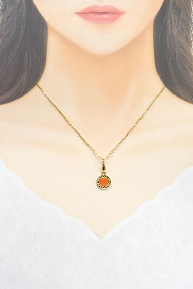 ブルガリの定番コレクション、アイコニックなブルガリ・ブルガリのコインのようなフォルムと、サンゴのサーモンピンクの色合いが可愛らしいネックレスです