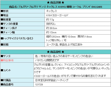 商品名:ブルガリ・ブルガリ サンゴ ネックレス K18YG 珊瑚 コーラル ブランド BVLGARI
