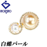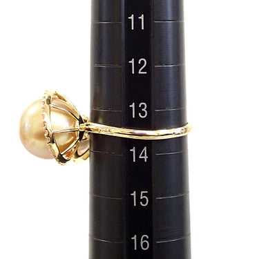 白蝶真珠(南洋真珠) リング アコヤ真珠 ダイヤモンド K18イエローゴールド 細め 華奢【中古】【900043】