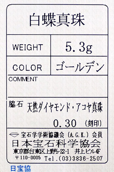 白蝶真珠(南洋真珠) 色:ゴールデンイエロー