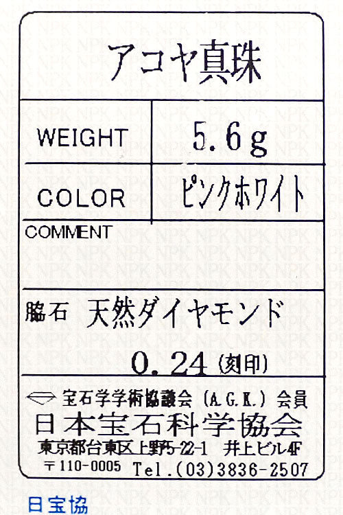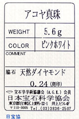 アコヤ真珠 色:ピンクを帯びたクリームホワイトの色合い