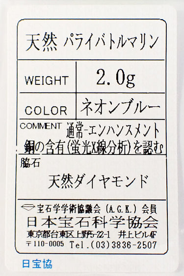 パライバトルマリン 色:やや淡いネオンブルーの色合い