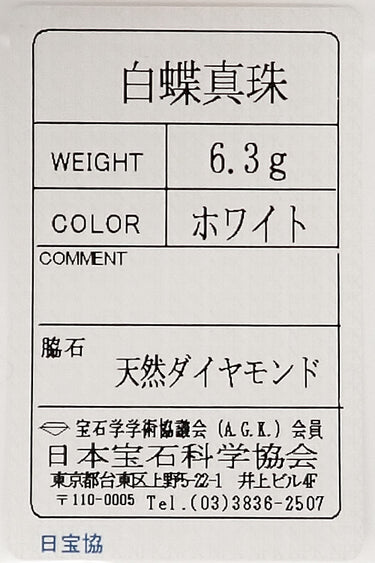 コメント ミキモトの、自然体な形の白蝶パールに温かみを感じる、上品なネックレスです。テリの良いダイヤモンドが眩く煌めき、華やかさを添えてくれます。
