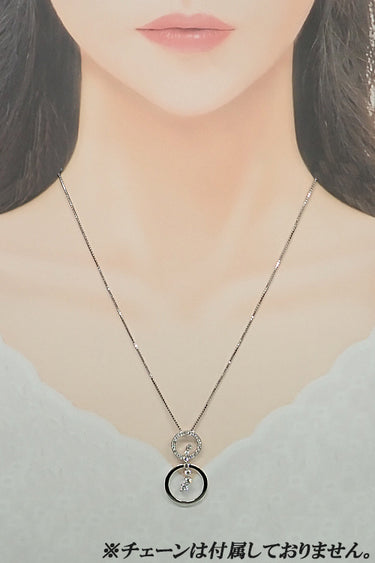 コメント 2連のサークルに流れるようにセットされた大小のダイヤモンドのラインが、華やかにきらめくスタイリッシュなペンダントトップです。動きに合わせて、サークルパーツは前後に揺れて輝きます。