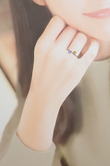 コメント ブルーとオレンジのコントラストの効いたバイカラーがポップな雰囲気のサファイアリングです。ウェーブがかった細身のアームでカジュアルにお召いただけます。