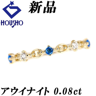 アウイナイト リング ダイヤモンド K18イエローゴールド 新品 ミル打ち ミルグレイン 華奢 細め 【新品】【901000】