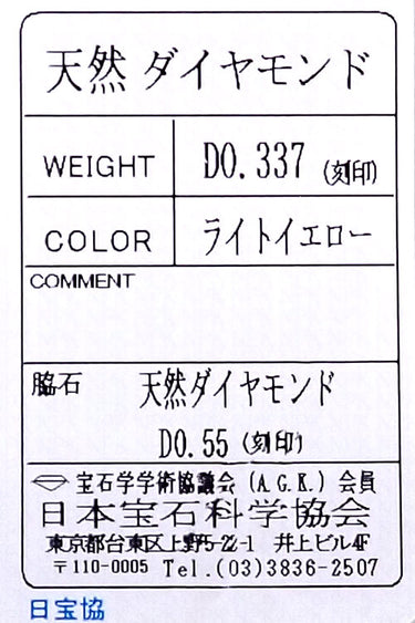 イエローダイヤモンド 色:やや淡いイエローの色合い