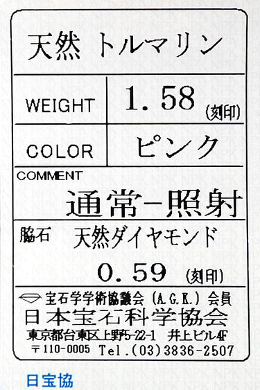 ピンクトルマリンの重量 1.58ct