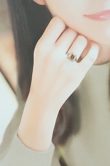 商品名 ブラウンダイヤモンド リング ダイヤモンド K18ピンクゴールド 鑑定書 グレード付き エメラルドカット 変形カット ファンシーカット ミル打ち ミルグレイン