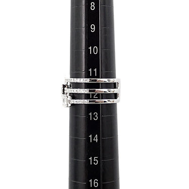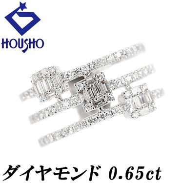 ダイヤモンド リング K18ホワイトゴールド 3連 重ね付け風 透かし 太め 幅広【中古】【901708】