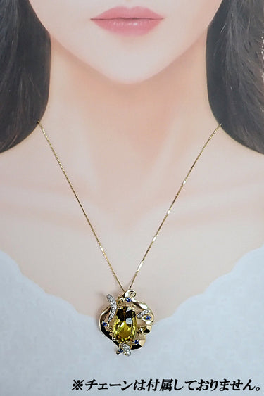 コメント 大ぶりのイエローベリルに目を惹かれる、ラグジュアリーな雰囲気のペンダントブローチです。散りばめられたサファイアとのコントラストや曲線を描くダイヤモンドが、軽やかでエレガントな印象を与えてくれます。