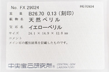 イエローベリル 色:グリーンを帯びた落ち着いたイエロー