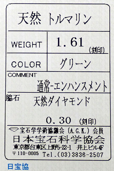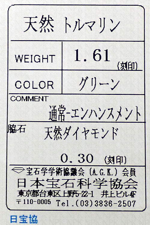 グリーントルマリン 色:落ち着いた深いグリーンの色合い