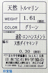 コメント 深みのあるグリーンカラーがシックな雰囲気を醸し出すトルマリンのリングです。イエローゴールドカラーとのコントラストが、クラシカルでエレガントなお手元へと導きます。