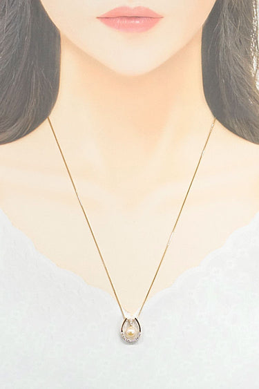 アンブローズの、アコヤパールのやさしい色合いと細めのホースシューが大人可愛いネックレスです