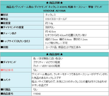 商品名:ヴァンドーム青山 ダイヤモンド ネックレス K18YG 馬蹄 ホースシュー 華奢 ブランド VENDOME AOYAMA