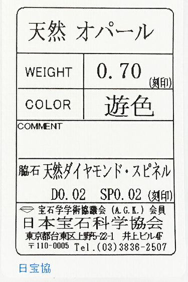 色 : 乳白色の地色にオレンジ・グリーン・ブルーの斑のある遊色