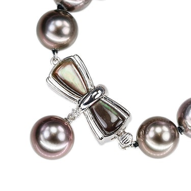コメント タサキの、大ぶりの黒蝶パールを贅沢に使用した、シックでエレガントなネックレスです。クラスプはリボンの形をしており、取り外し可能なチャームを取り付けて背中側のおしゃれをお楽しみいただけます。チャームは単体でペンダントトップとしてもお召いただけます。