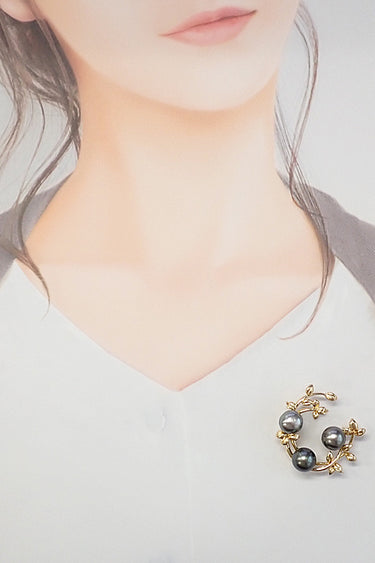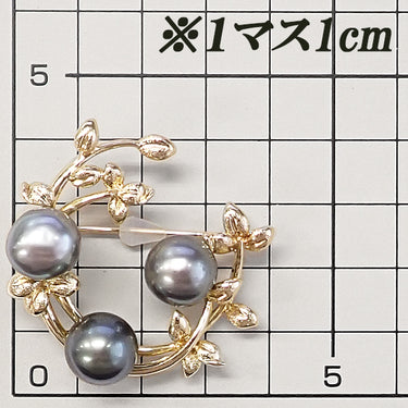 商品名 タサキ 田崎真珠 黒蝶真珠(南洋真珠) ブローチ K18イエローゴールド TASAKI 葉 リーフ 植物 ボタニカル
