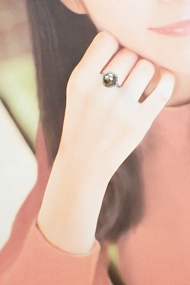 コメント ミキモトの、グリーンを帯びたブラックカラーがシックな雰囲気の黒蝶パールリングです。石座のクラシカルな透かしや取り巻きのメレダイヤモンドが、可愛らしさと上品さを演出します。