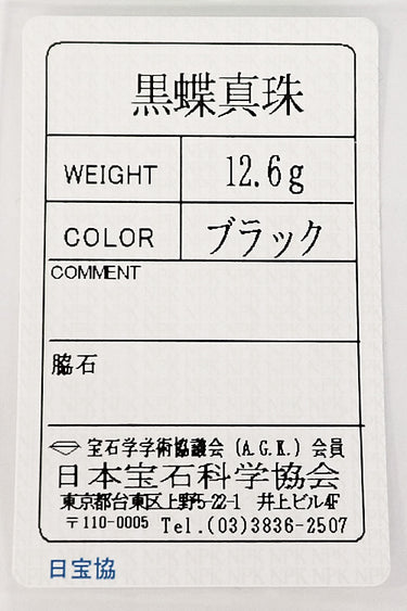 黒蝶真珠(南洋真珠)のサイズ 径約 12.0mm