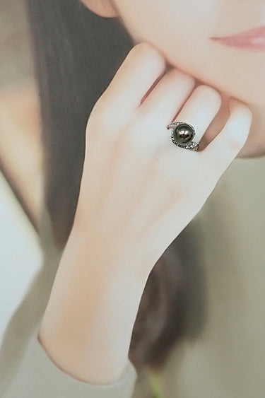 コメント グリーンを帯びたブラックカラーがシックな、黒蝶真珠のリングです。パールを包み込むように並んだダイヤモンドが、華やかな煌めきでエレガントな印象へと導いてくれます。