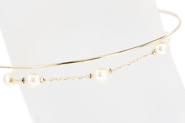 コメント 小ぶりなアコヤパールが等間隔に配置された、上品なバングルです。細めのバングルとチェーンが一緒になっており、一点でこなれ感を生み出せます。引き輪がないのでスマートに着脱できます。