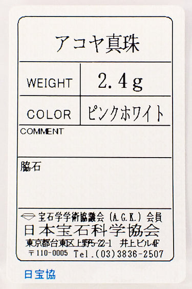 アコヤ真珠 色:ピンクを帯びたクリームホワイトの色合い