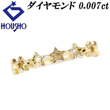 ダイヤモンド リング K18イエローゴールド 星 スター 細め 華奢 透かし 一粒石【中古】【903417】