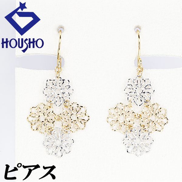 商品名 ピアス K18イエローゴールド K18ホワイトゴールド 花 フラワー 植物 ボタニカル 透かし フック 揺れる 地金のみ 石なし