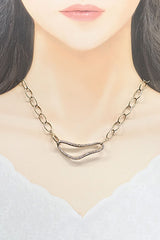 コメント カシケイの、マットな質感のチェーンにユニークなフォルムのサークルがヌーディーでモダンな雰囲気のマーシネスネックレスです。 ブラウンダイヤモンドのシックな輝きや、ゆったりとした空気感をまとわせたサークルデザインが大人の余裕を感じさせるお品です。