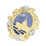 アズタイム 石川暢子 ダイヤモンド ブローチ ブルーサファイア K18イエローゴールド Pt900 As Time ソーダライト ペンダントトップ 花 フラワー 植物 ボタニカル 風景 作家 デザイナー 梨地 マット ツヤ消し コンビ【中古】【902788】