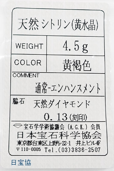 シトリン 色:若干ブラウンを帯びたイエローオレンジ