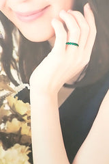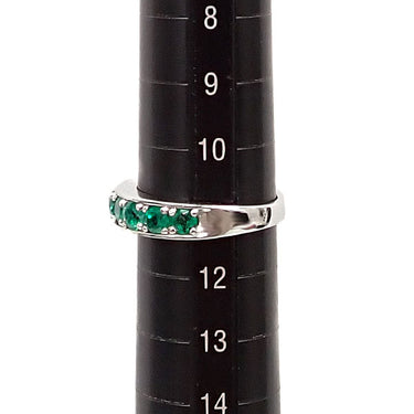 コメント GSTVの、ビビッドなエメラルドがアクティブな印象を与えてくれる、ハーフエタニティリングです。華やかな色合いですがシンプルなデザインなので、コーディネートに合わせやすいお品です。
