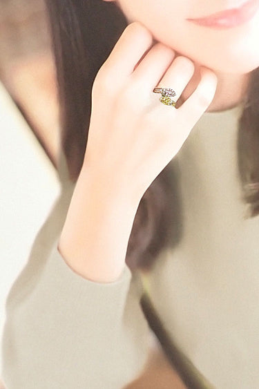 コメント GSTVの、ピンクゴールドとイエローゴールドのコンビネーションが、エレガントさと可愛らしさを兼ね備えたリングです。地金の色に合わせたピンクとイエローのダイヤモンドが明るく輝き、ラグジュアリーな印象を添えてくれます。
