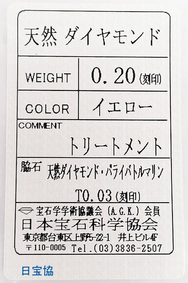 ダイヤモンド 色:トリートイエロー、ほぼ無色に近い色合いい