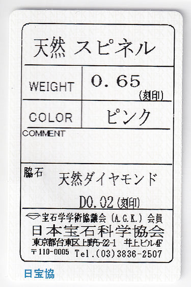 ピンクスピネルの重量 0.65ct