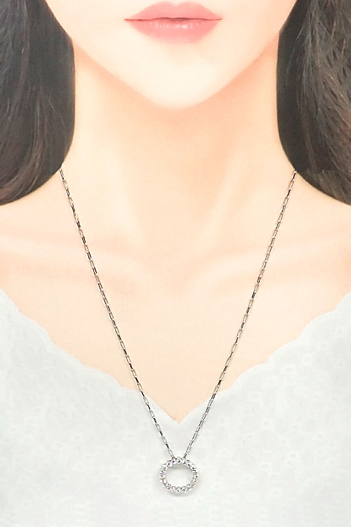 コメント リースのように円を描くダイヤモンドが華やかに煌めくネックレスです。ロングネックレスですがスライド式のアジャスターがあるので、お好みの長さに調節して様々なコーディネートに合わせてお楽しみいただけます。