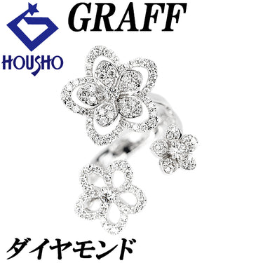 グラフ ダイヤモンド ワイルドフラワー リング K18ホワイトゴールド GRAFF トリプル 花 フラワー 植物 ボタニカル オープンリング【中古】【903698】