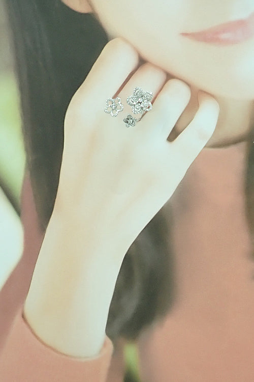 コメント グラフの、3輪のフラワーモチーフにテリの良いダイヤモンドが眩く輝く、ラグジュアリーなワイルドフラワーコレクションのリングです。オープンリングになっており、指の間から咲いているような、軽やかで可愛らしいデザインが目を惹くお品です。